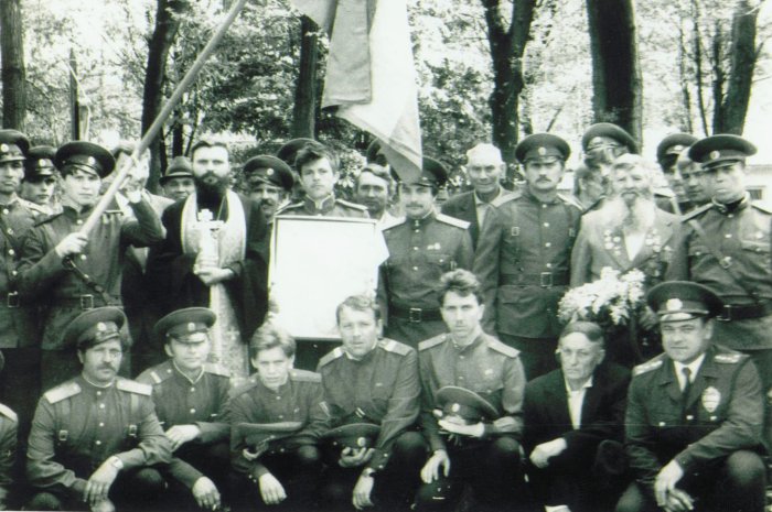 Это группа бойцов 31-го казачьего полка, в 1990-х годах он был такого же типа, как 96-й Донской полк, атаманом его являлся Н.Бобко. По некоторым сведениям, потом атамана Бобко ликвидировали на операционном столе во время подстроенной хирургической операции. Это очень редкая фотография, ее в интернете, кажется, никогда не было. На фото казаки 31-го полка перед их отправкой на войну в Приднестровье.